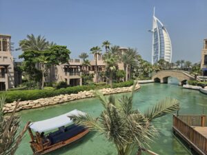 Traditioneller arabischer Markt mit wunderschöner Aussicht auf das Burj Al Arab. Ideal für Fotos und kleine Spaziergänge.